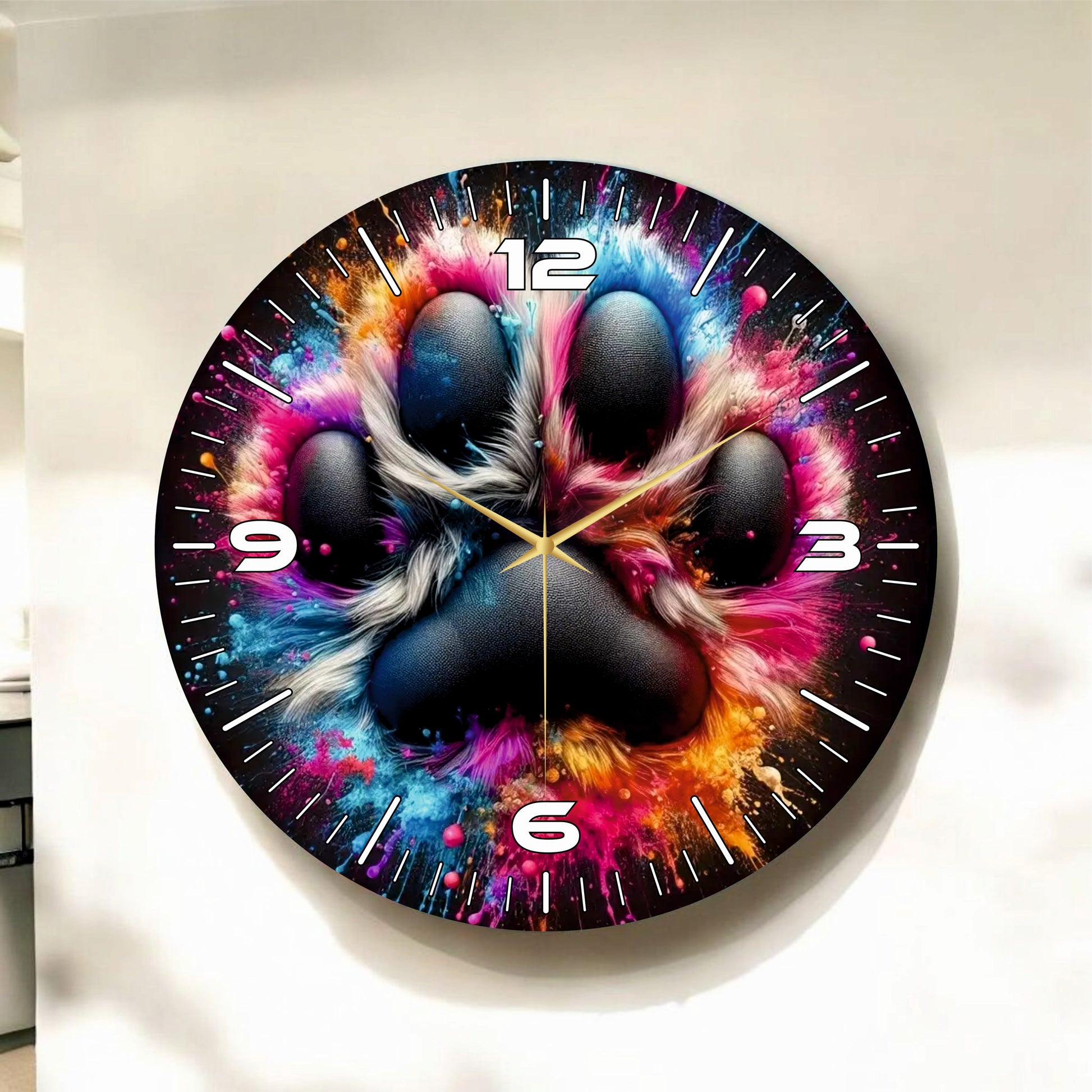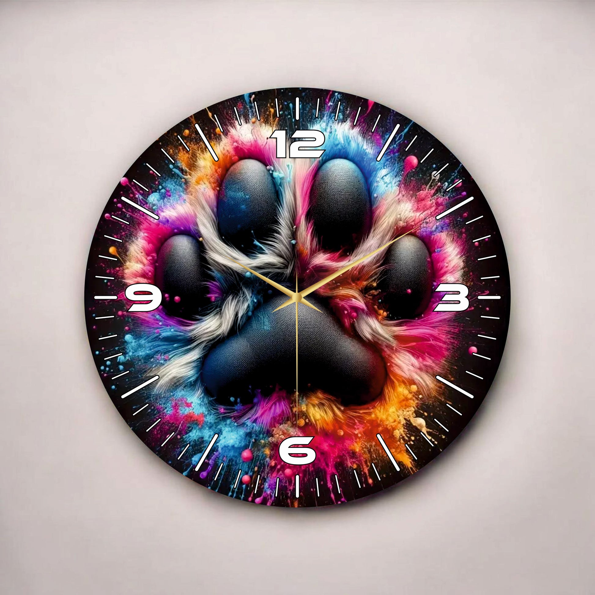 Renkli Baskı Kedi Pati Çocuk Desenli Sayılı Hediyelik Ahşap Sessiz Tablo Duvar Saati