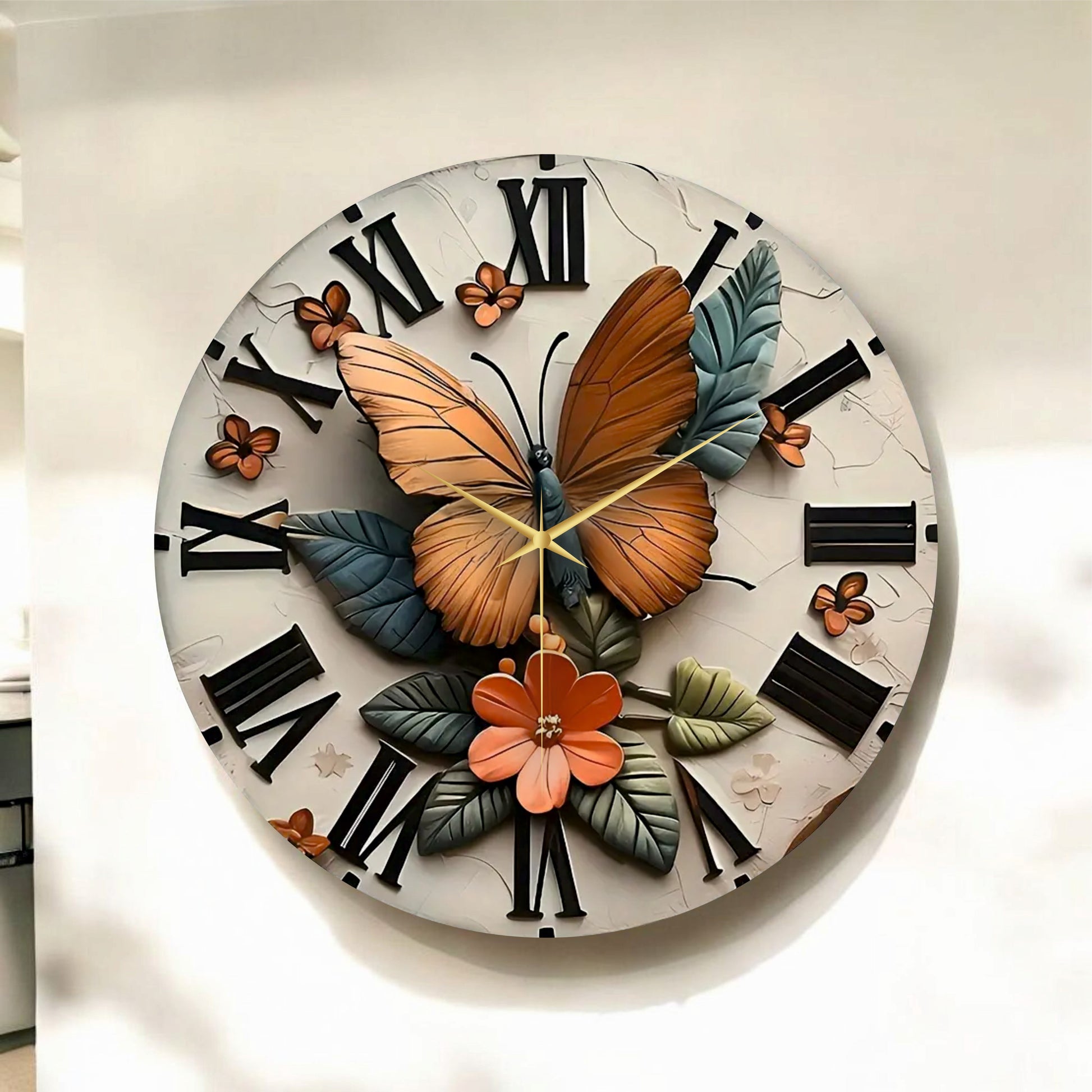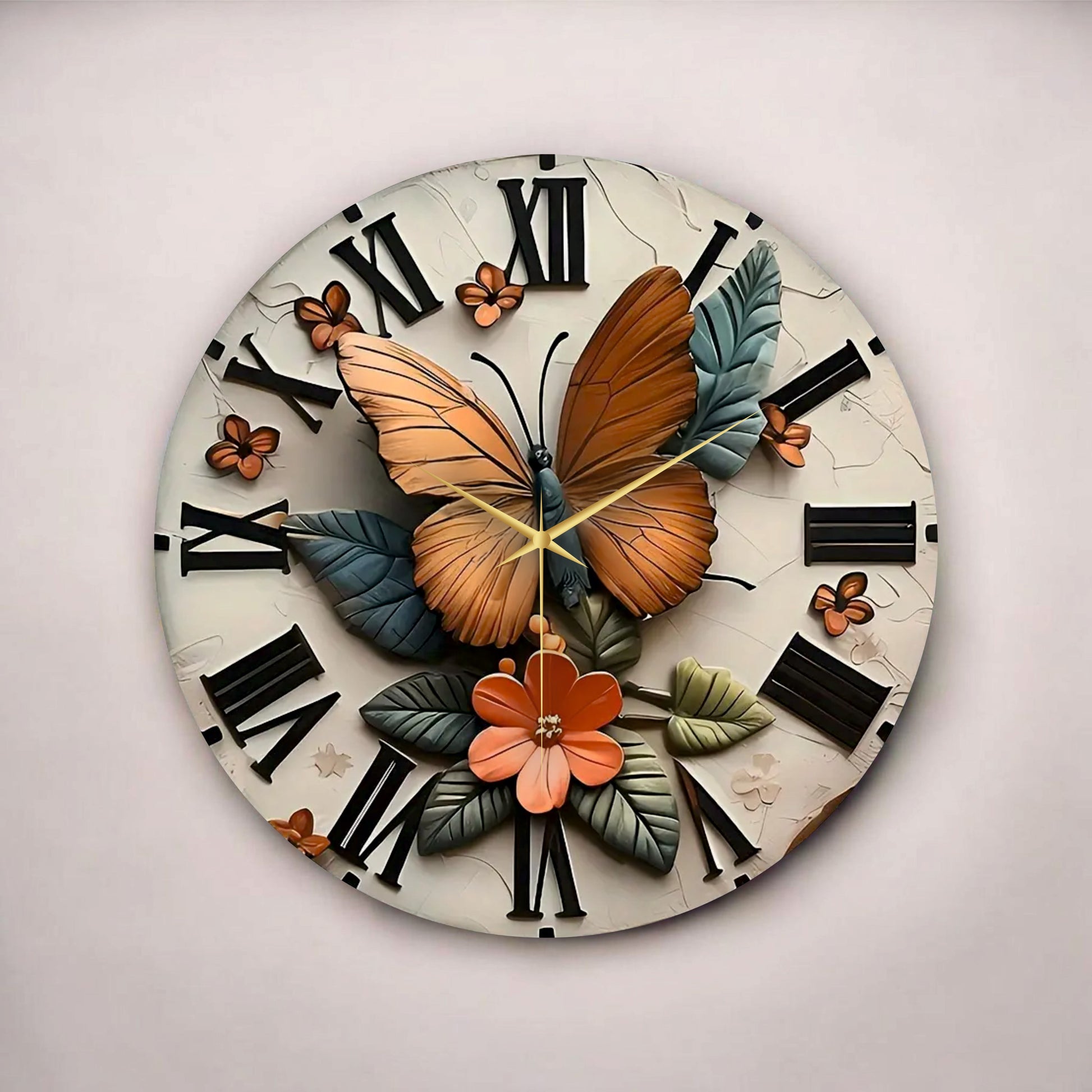 Renkli Baskı Kelebek Yaprak Desenli Sayılı Hediyelik Ahşap Sessiz Tablo Duvar Saati