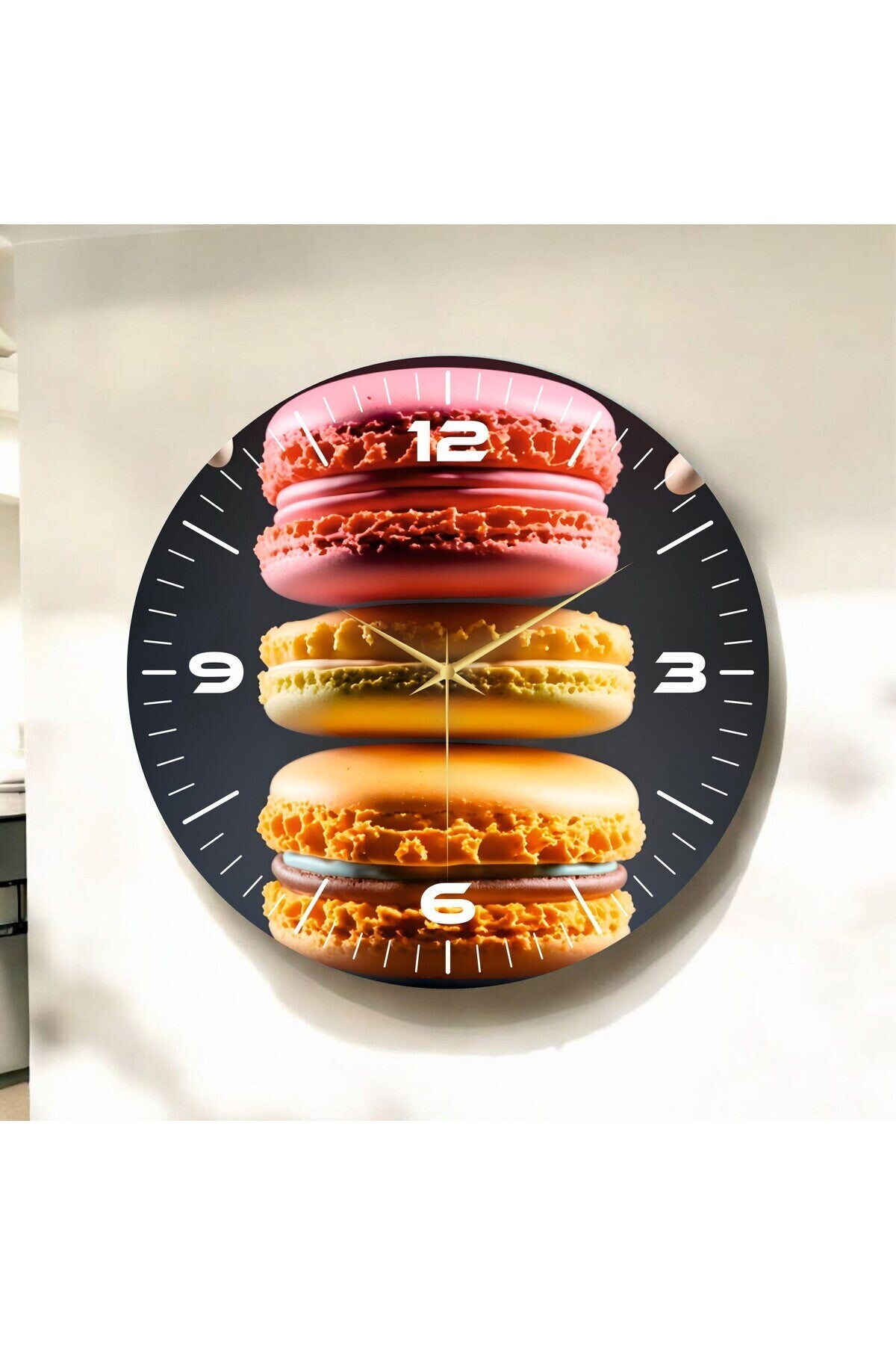 Renkli Baskı Makaron Desenli Sayılı Hediyelik Ahşap Sessiz Tablo Duvar Saati
