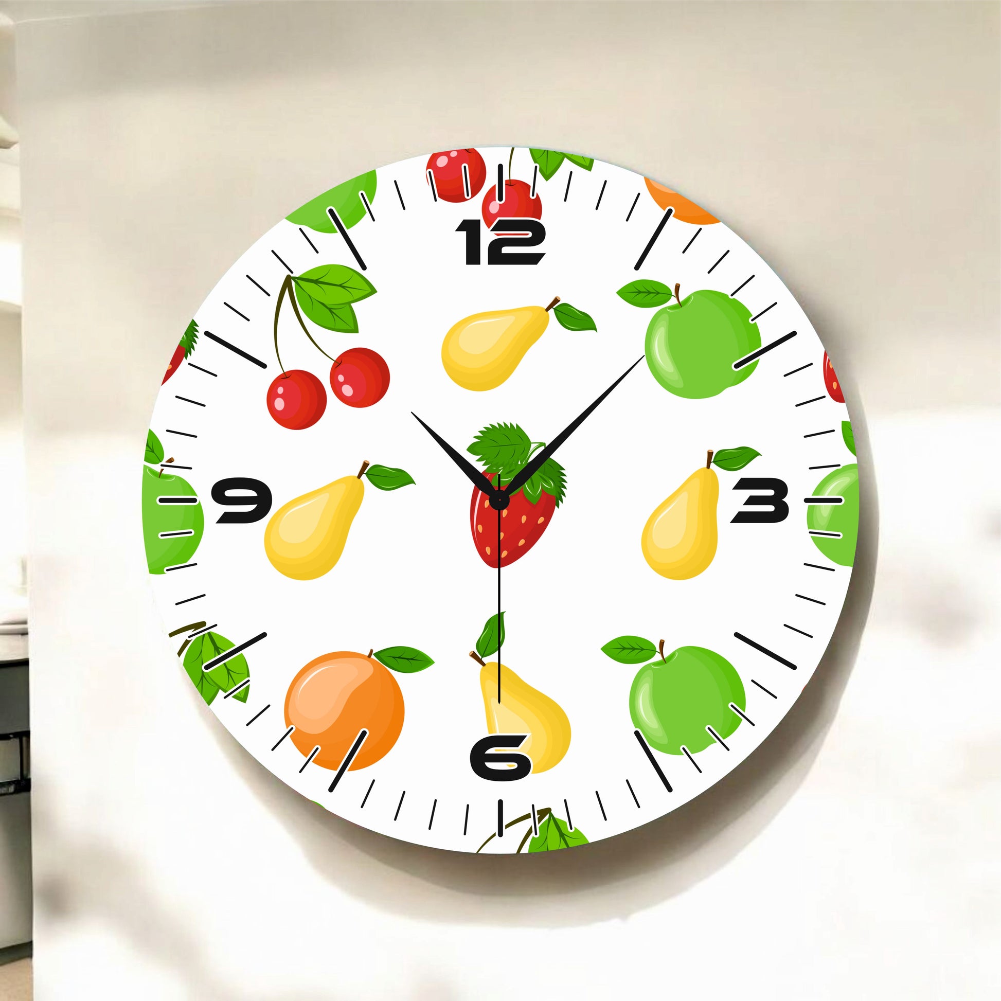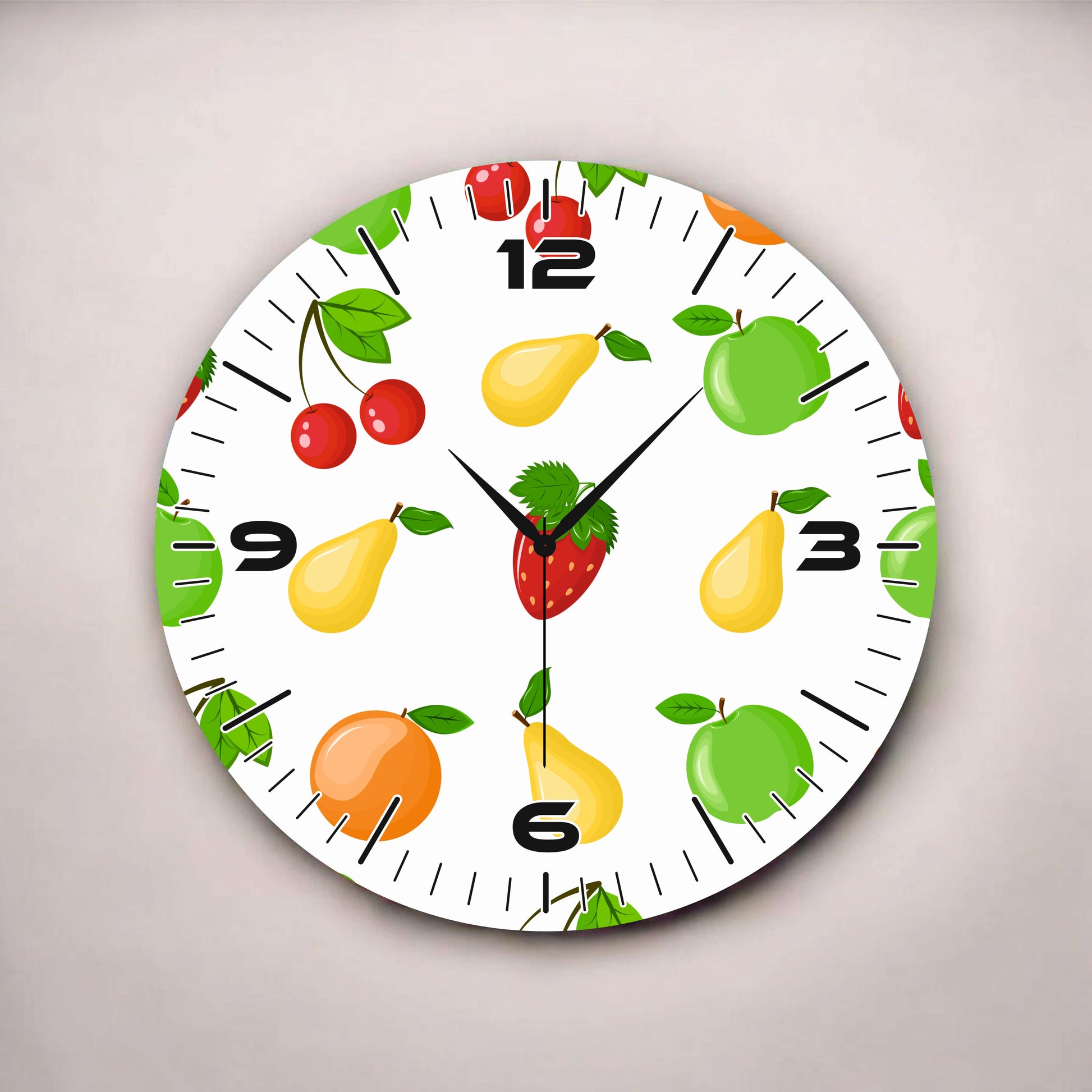 Renkli Baskı Meyve Desenli Sayılı Hediyelik Ahşap Sessiz Tablo Duvar Saati