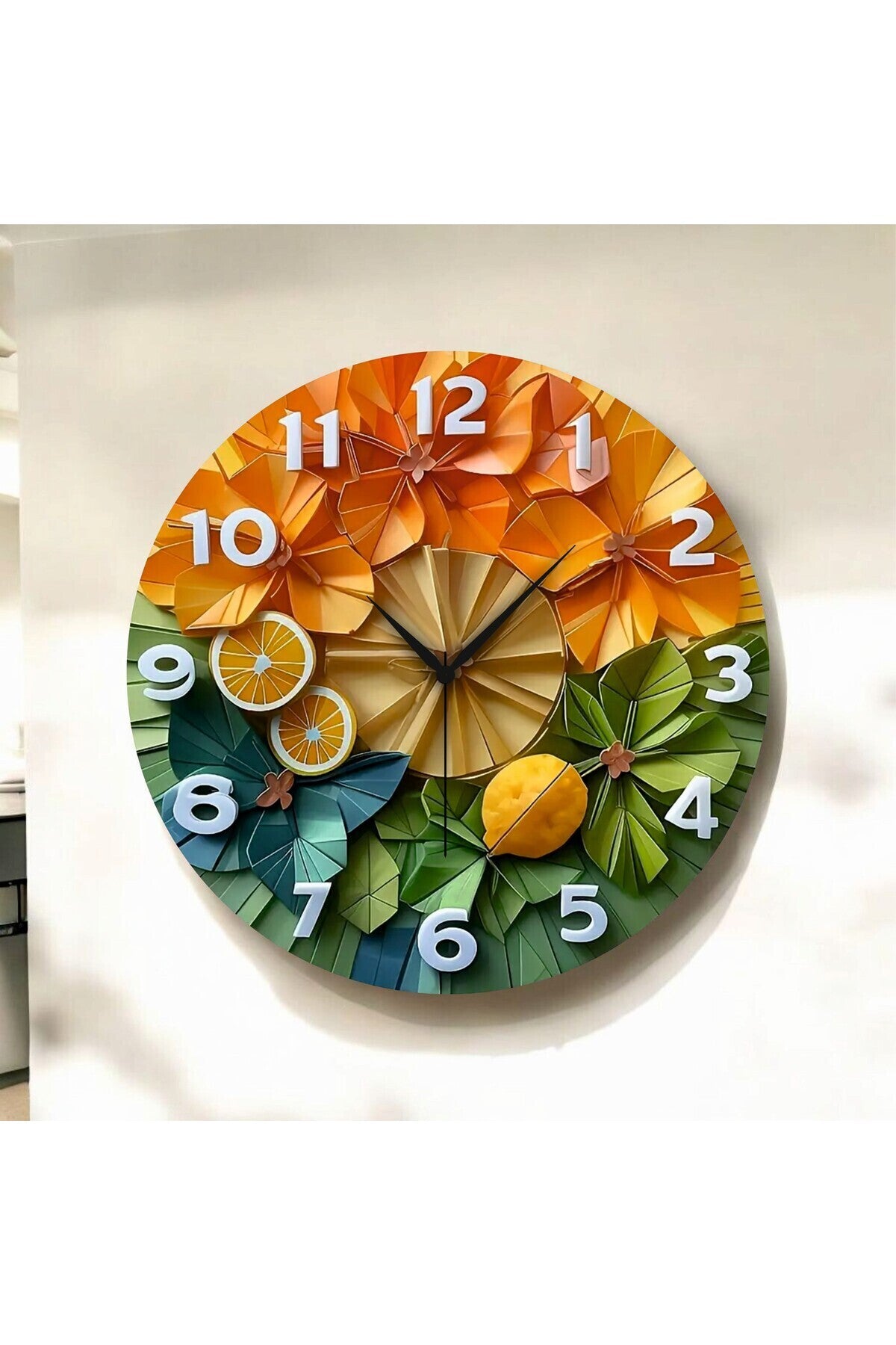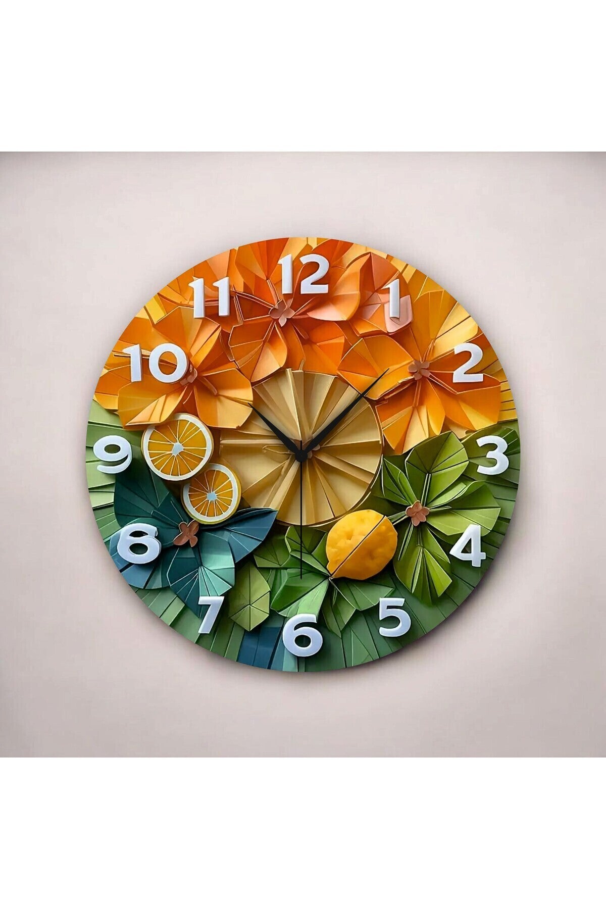- Modern tasarımıyla dikkat çeken renkli meyve sebze desenli ahşap Tablo Duvar saati, evinizin dekorasyonuna şıklık katıyor.; - 45cm çapında geniş ekranıyla zamanı kolayca okuyabilmenizi sağlar; sessiz çalışma tipi sayesinde gürültüsüz bir kullanım sunar.; - Çok renkli tasarımıyla göz alıcı bir görünüm sergileyen bu Tablo Duvar saati, her türlü iç mekan dekorasyonuna uyum sağlayacak şekilde tasarlanmıştır.; - Pilli çalışma tipi ile pratik kullanım imkanı sunarken, enerji tasarrufu yapmanızda yardımcı olur.; - Modern stil anlayışına sahip olan bu Tablo Duvar saati, çağdaş yaşam alanlarının vazgeçilmez bir parçası haline gelir.; - Türkiye'de üretilmiş olmasıyla yerli üretim avantajından faydalanırken kalite standartlarına uygunluğu garanti altına alınmıştır.; - Web color özelliği sayesinde çeşitli renk seçenekleriyle kişisel zevkinize göre ayarlama imkanına sahipsiniz; böylece her zaman en sevdiğiniz renkte kalabilirsiniz.; - Yuvarlak şekliyle klasik ve zamansız bir estetik sunarken, ahşap materyali doğal dokusuyla mekanınıza sıcaklık katmaktadır.