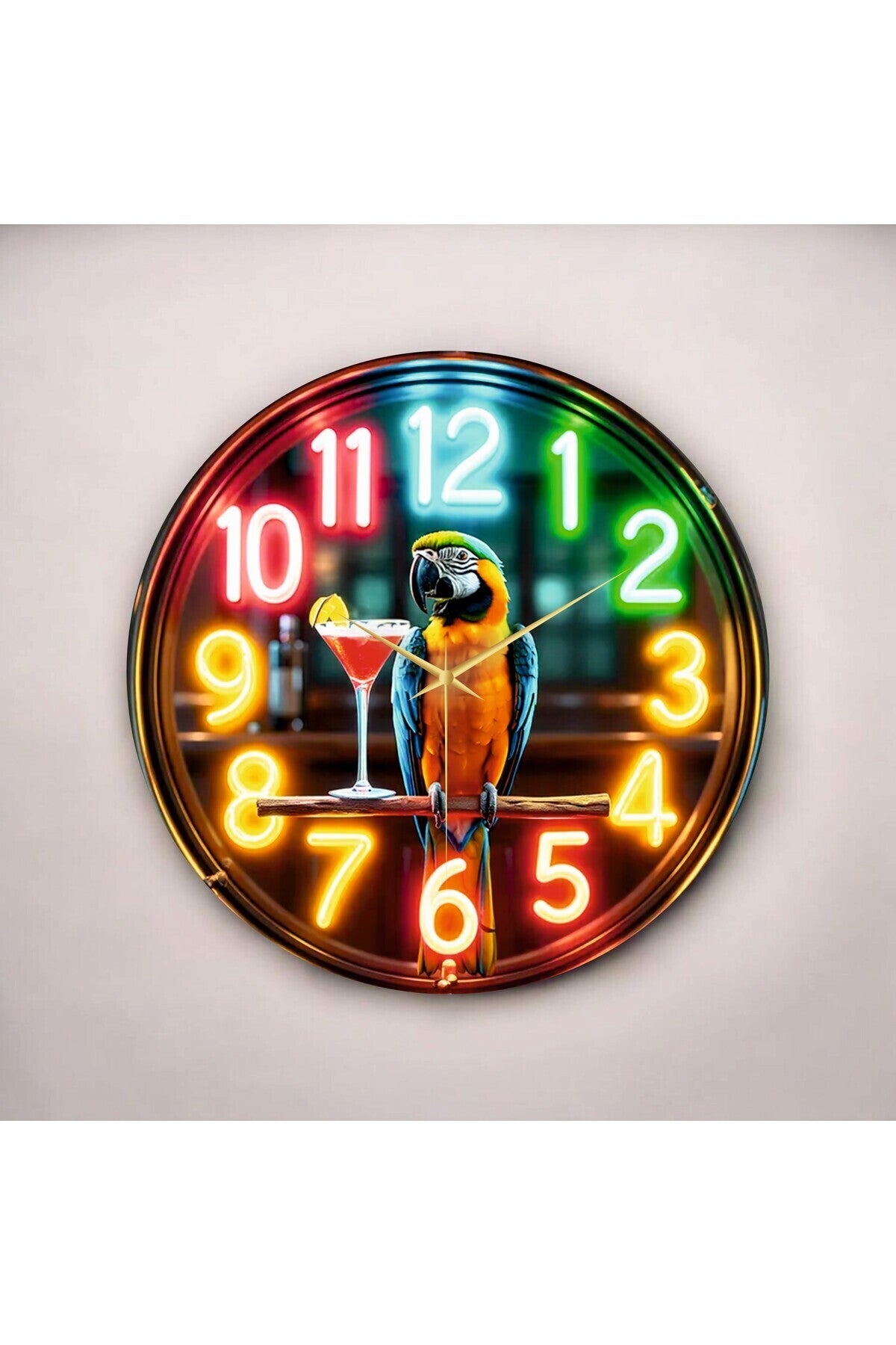 Renkli Baskı Papağan Bar Desenli Sayılı Hediyelik Ahşap Sessiz Tablo Duvar Saati 50cm