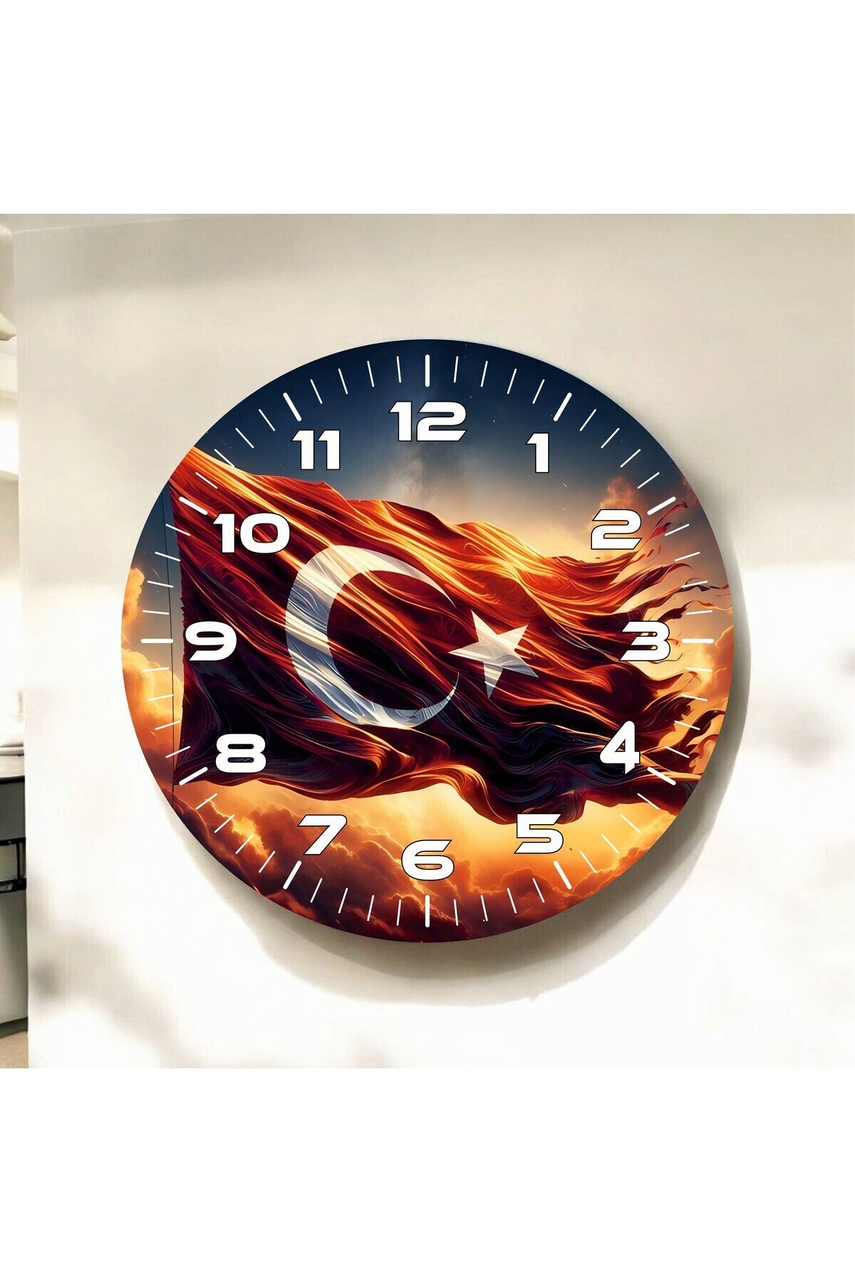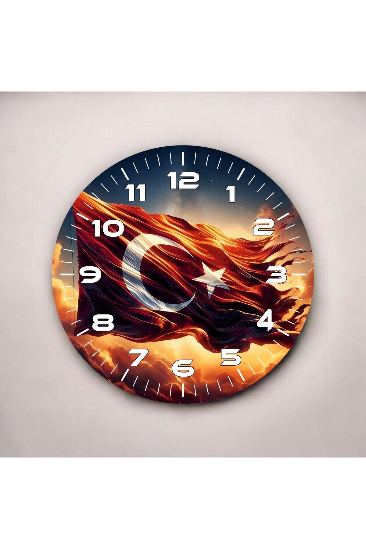 Renkli Baskı Türk Bayrağı Desenli Sayılı Hediyelik Ahşap Sessiz Tablo Duvar Saati