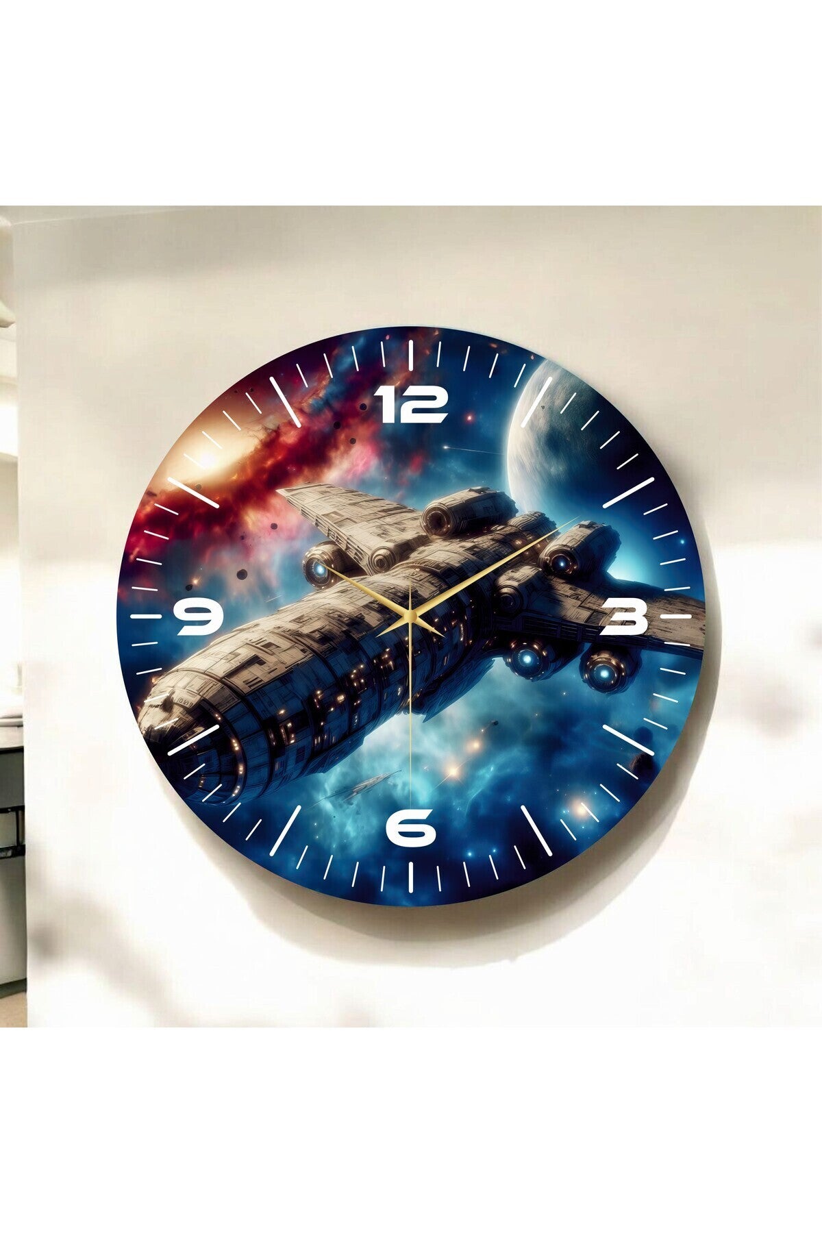 Renkli Baskı Uzay Desenli Sayılı Hediyelik Ahşap Sessiz Tablo Duvar Saati 45cm