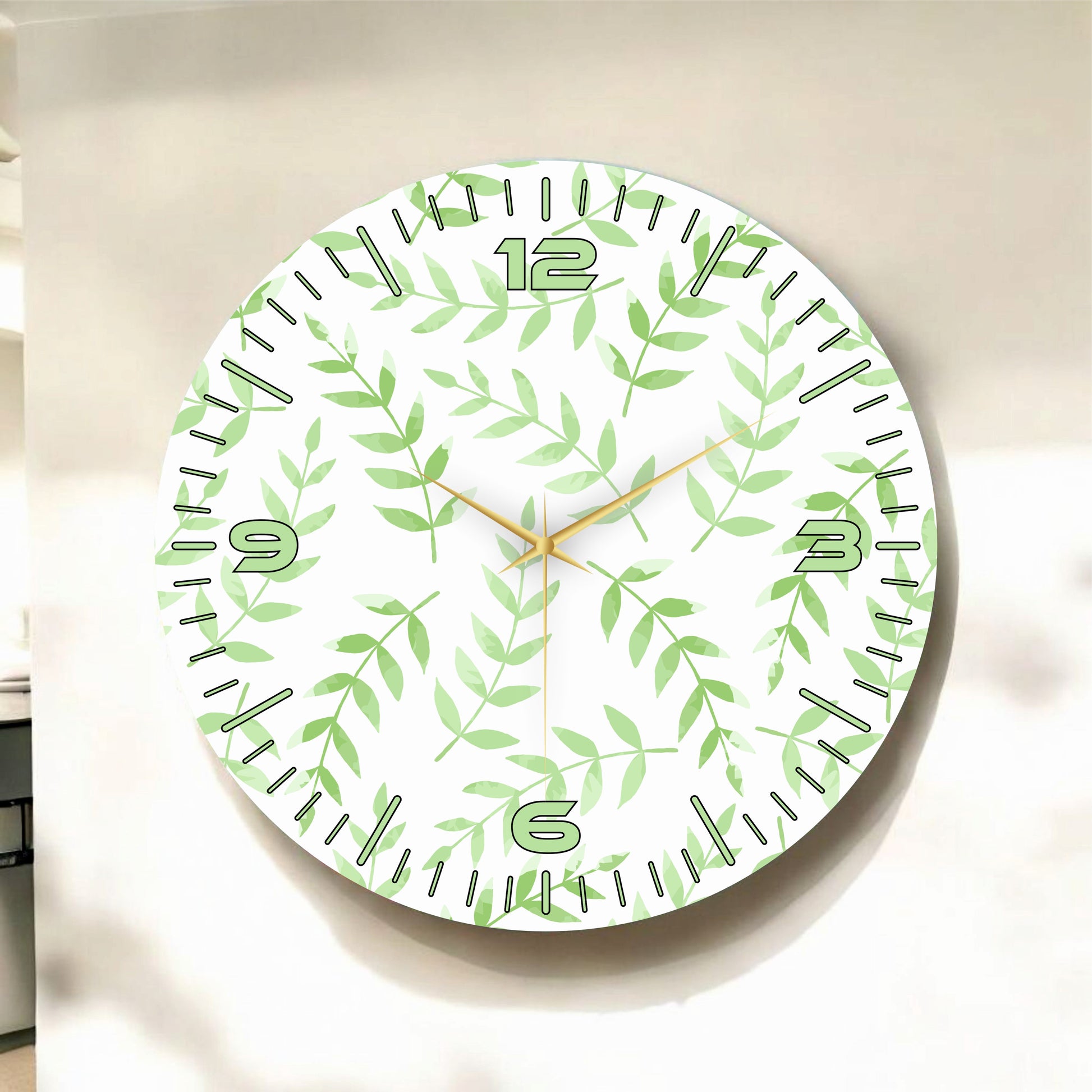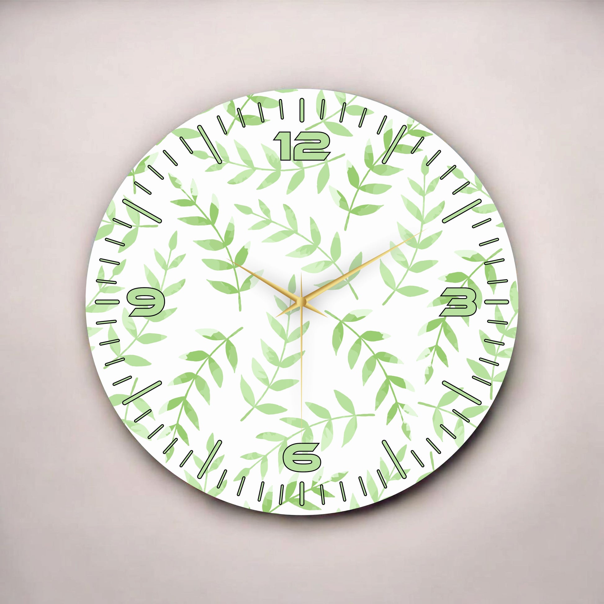 Renkli Baskı Yaprak Bitki Desenli Sayılı Hediyelik Ahşap Sessiz Tablo Duvar Saati