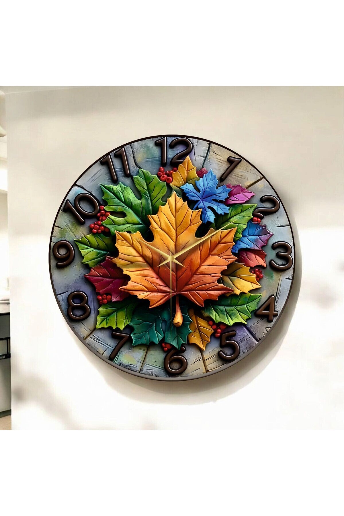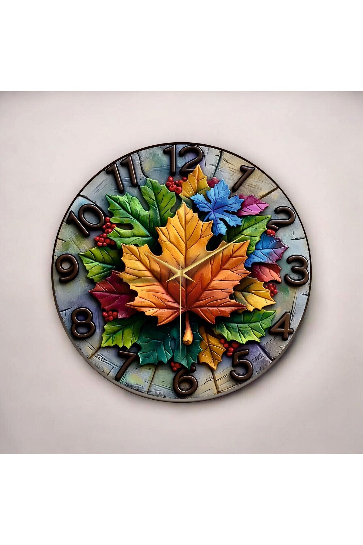 Renkli Baskı Yaprak Desenli Sayılı Hediyelik Ahşap Sessiz Tablo Duvar Saati