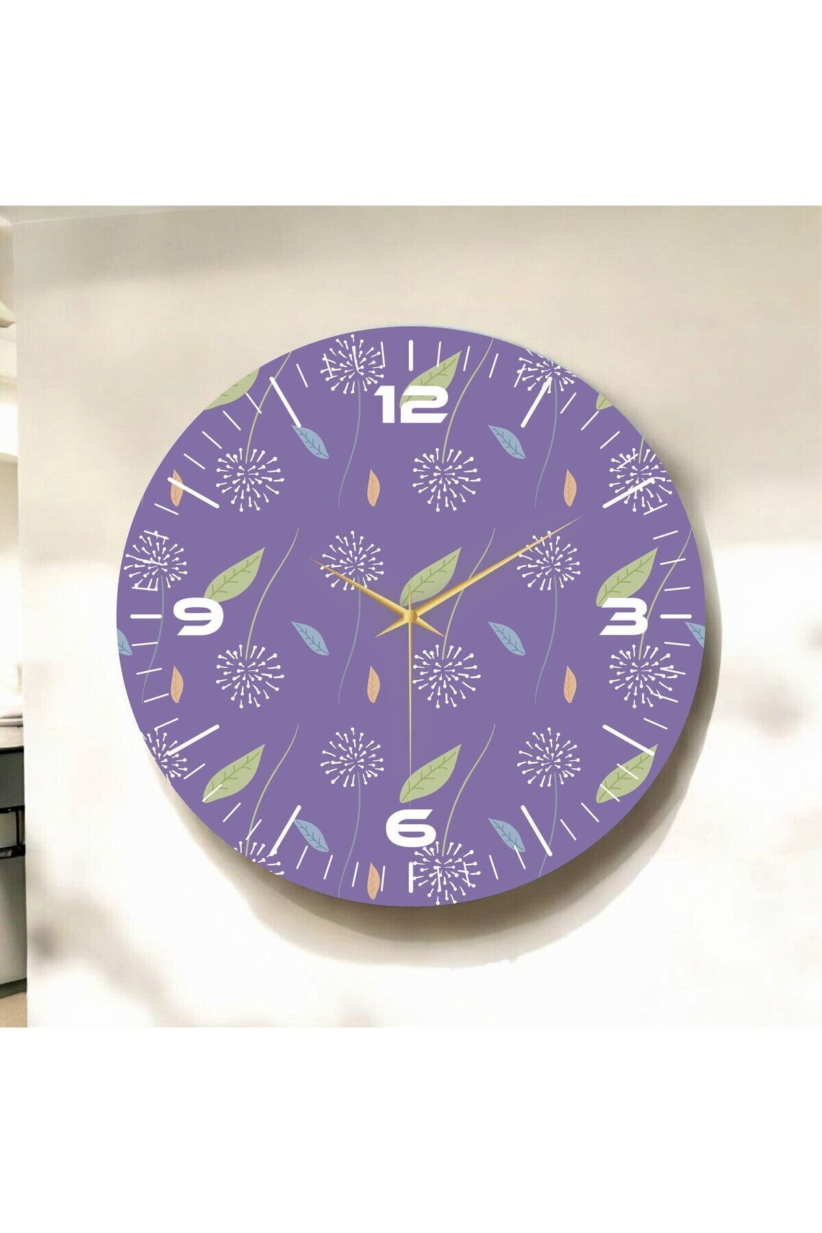 Renkli Baskı Yaprak Desenli Sayılı Hediyelik Ahşap Sessiz Tablo Duvar Saati