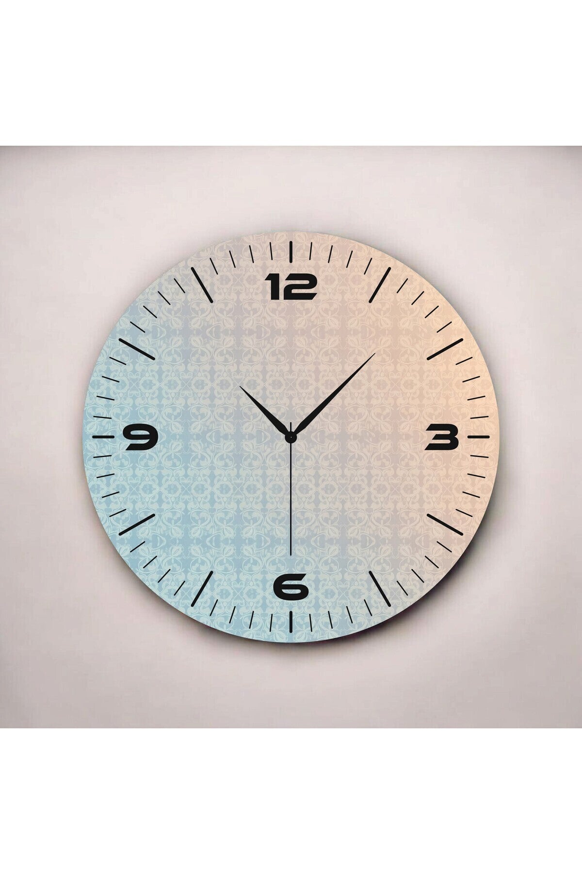 Sade Mavi Sarı Renkli Baskı Desenli Sayılı Hediyelik Ahşap Sessiz Tablo Duvar Saati