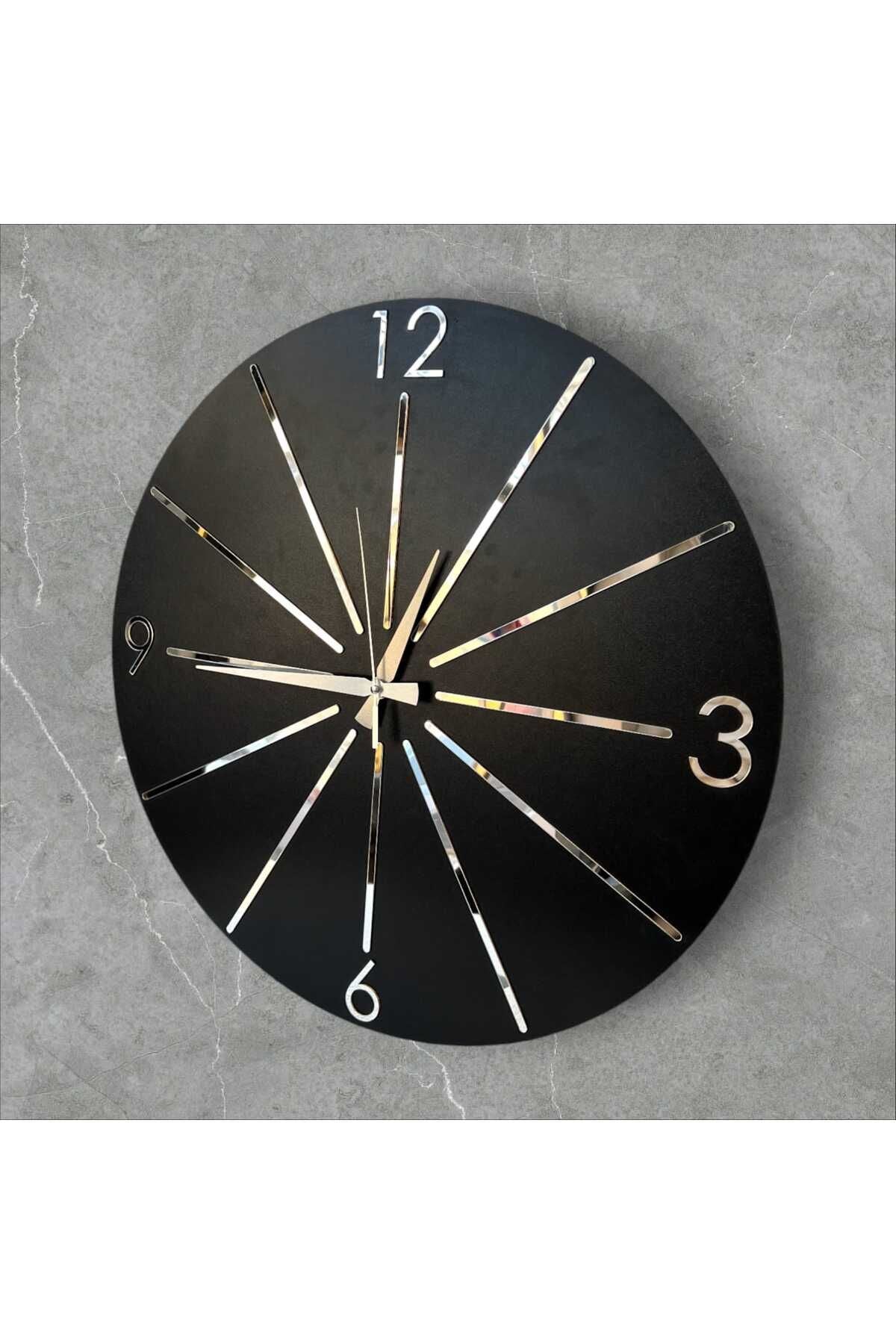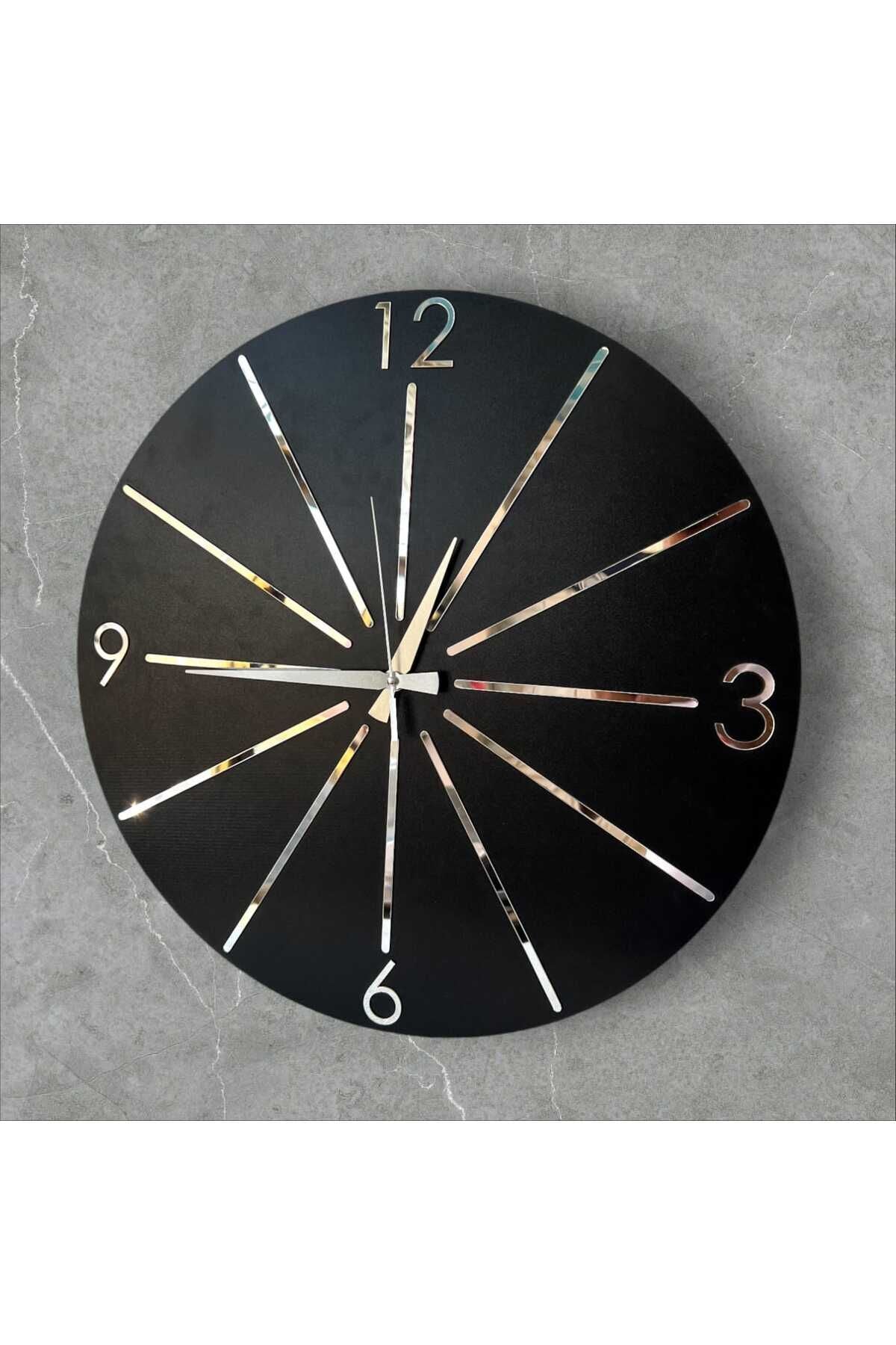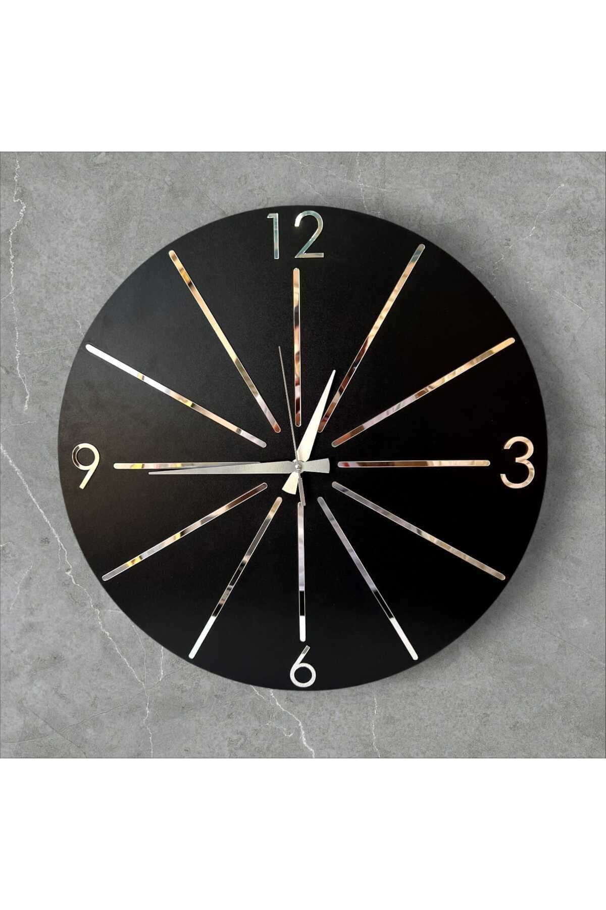 Siyah Renk Gold Gri Aynalı Çizgi Desenli Sessiz Hediyelik Ahşap Dekoratif Ev Ofis Duvar Saati 50cm