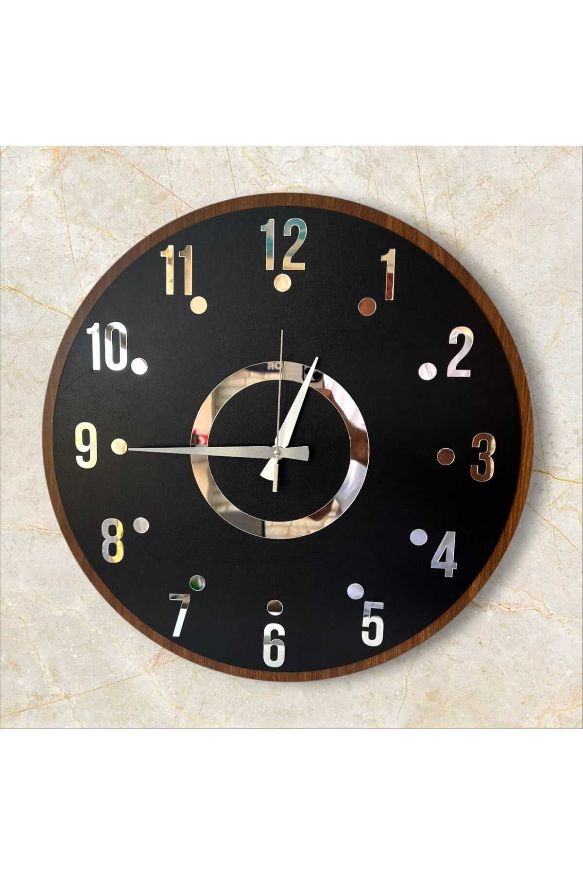 Siyah Renk Gold Gri Aynalı Sayılı Sessiz Hediyelik Ahşapanneler Günü Hediye Duvar Saati 50cm