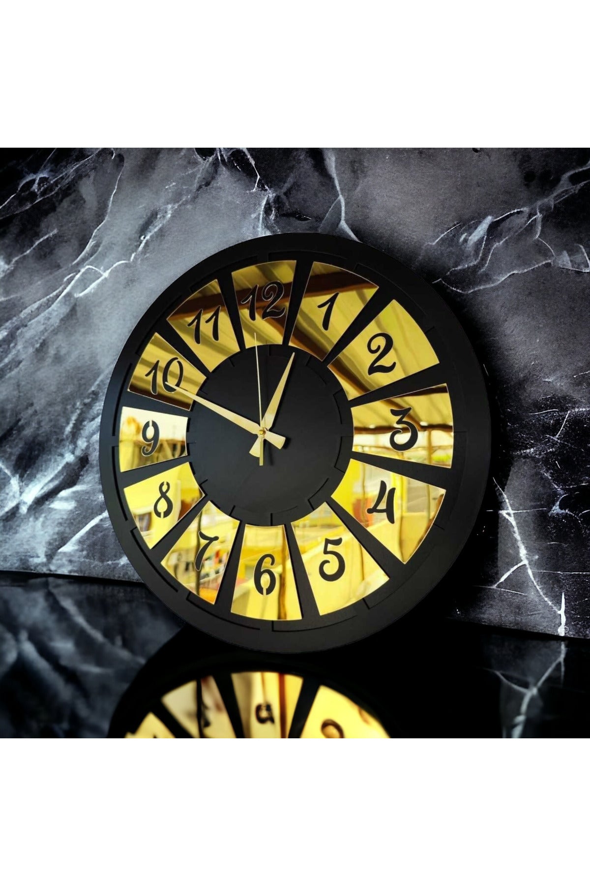 Siyah Renk Gold Sayılı Hediyelik Ahşap Dekoratif Farklı Desenli Ev Hediyelik Duvar Saati 50cm