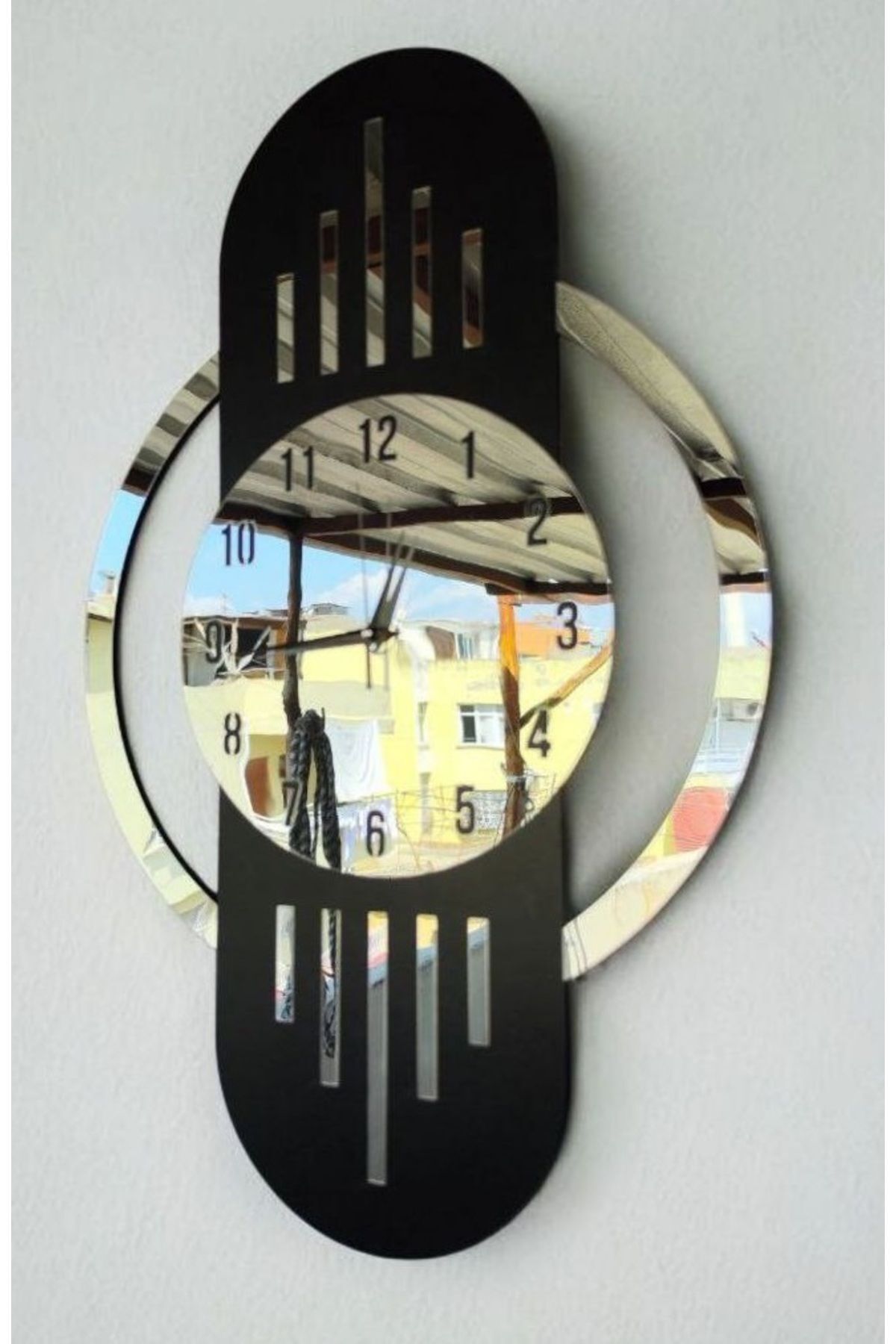 Siyah Renk Gümüş Aynalı Sayılı Hediyelik Ahşap Dekoratif Sessiz Büyük Boy Tablo Duvar Saati 70cm