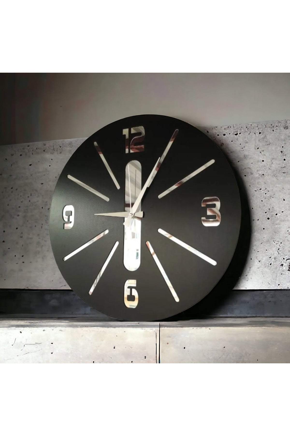 Siyah Renk Hediyelik Ahşap Aynalı Dekoratif Farklı Desenli Duvar Saati 50cm