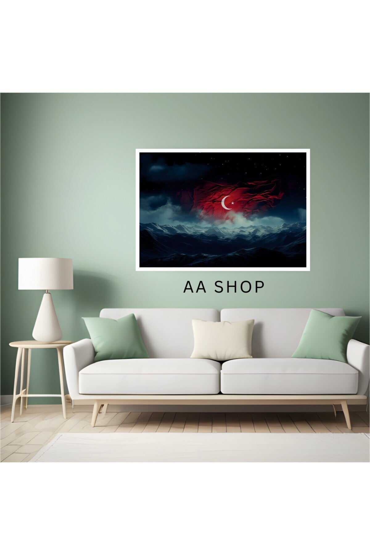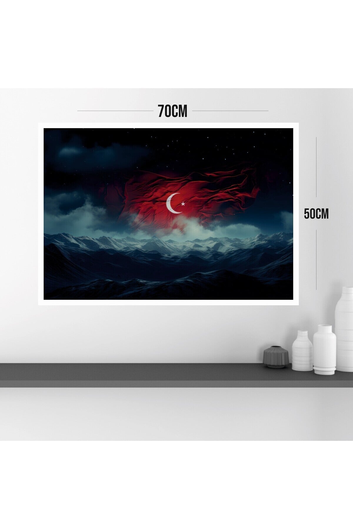 Türk Bayrağı Büyük Boy Renkli Solmaz Kaliteli Baskı Çerçeve Görünümlü MDF Tablo 70x50cm 168