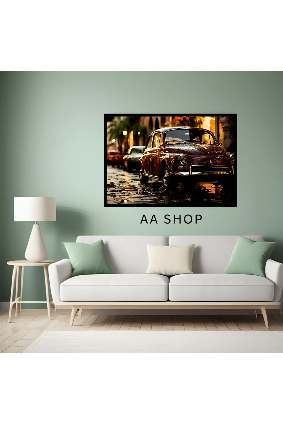Vosvos Araba Büyük Boy Renkli Solmaz Kaliteli Baskı Çerçeve Görünümlü MDF Tablo 70x50cm 154
