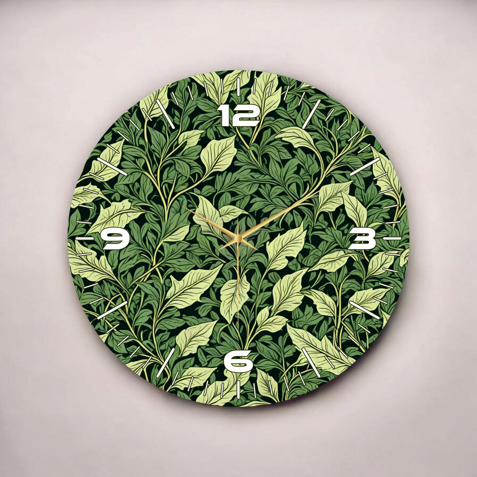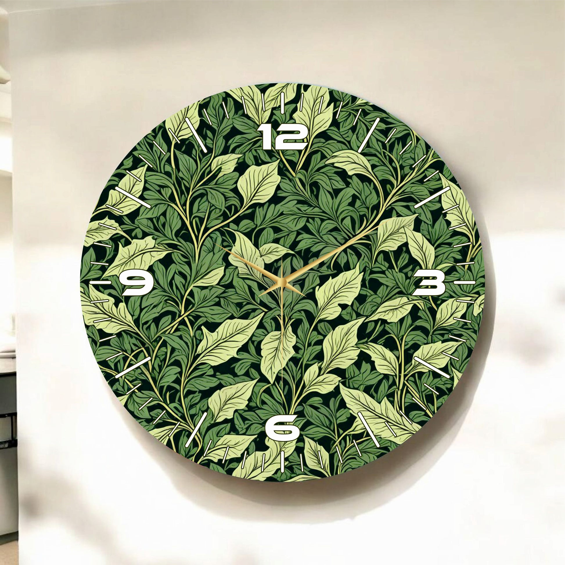 Yeşil Renkli Baskı Yaprak Desenli Sayılı Hediyelik Ahşap Sessiz Tablo Duvar Saati